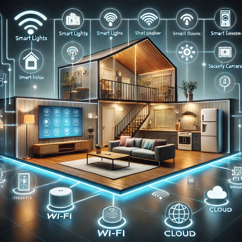 스마트홈은 사물인터넷(IoT) 기술을 기반으로 집 안의 다양한 기기를 연결하고 자동화하여, 원격 제어 또는 인공지능 기반의 자동 동작을 가능하게 하는 시스템입니다. 스마트폰, 태블릿, 음성 인식 스피커 등을 통해 가전제품, 조명, 난방, 보안 시스템 등을 편리하게 제어할 수 있습니다.