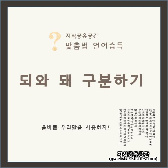 지금부터 '되'와 '돼'를 어떻게 구분하여 사용하는지 알아보도록 하겠습니다.