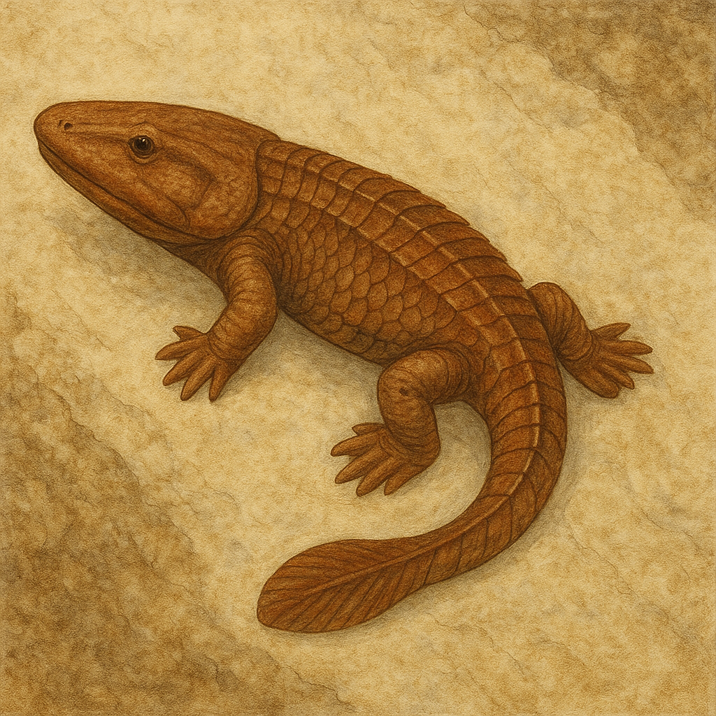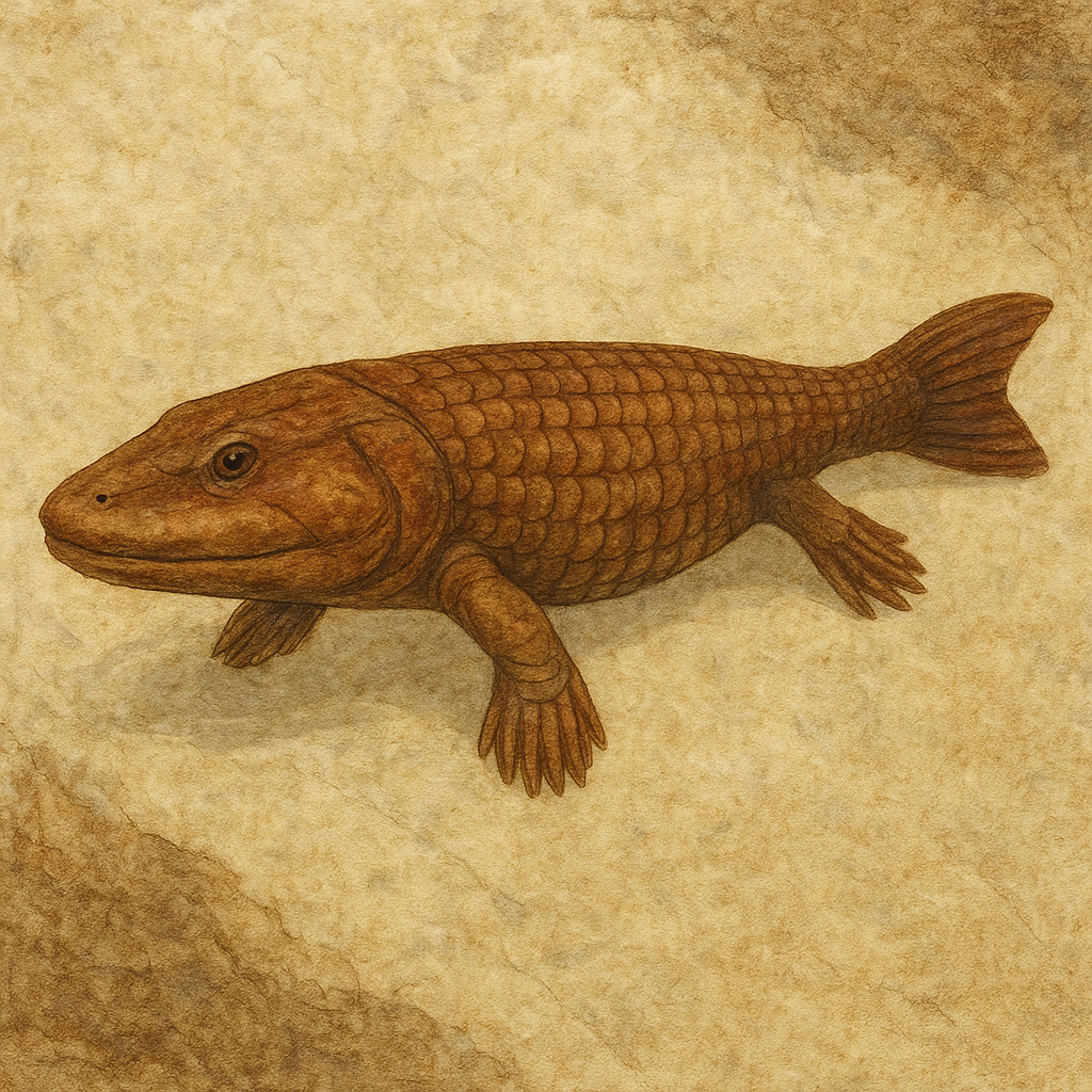 최초의 네발짐승 중 하나로, 지느러미에서 다리로의 진화 과정을 설명해주는 화석입니다. 폐와 아가미를 모두 지녔던 것으로 보이며, 육상 동물 진화의 이정표로 간주됩니다.