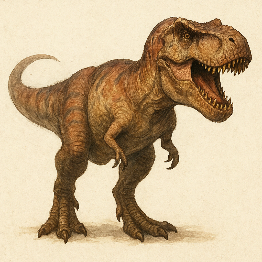 가장 유명한 공룡 중 하나로, 백악기의 최상위 포식자였습니다. 강력한 턱과 거대한 몸집은 공룡 연구뿐 아니라 대중문화에도 큰 영향을 끼쳤습니다.