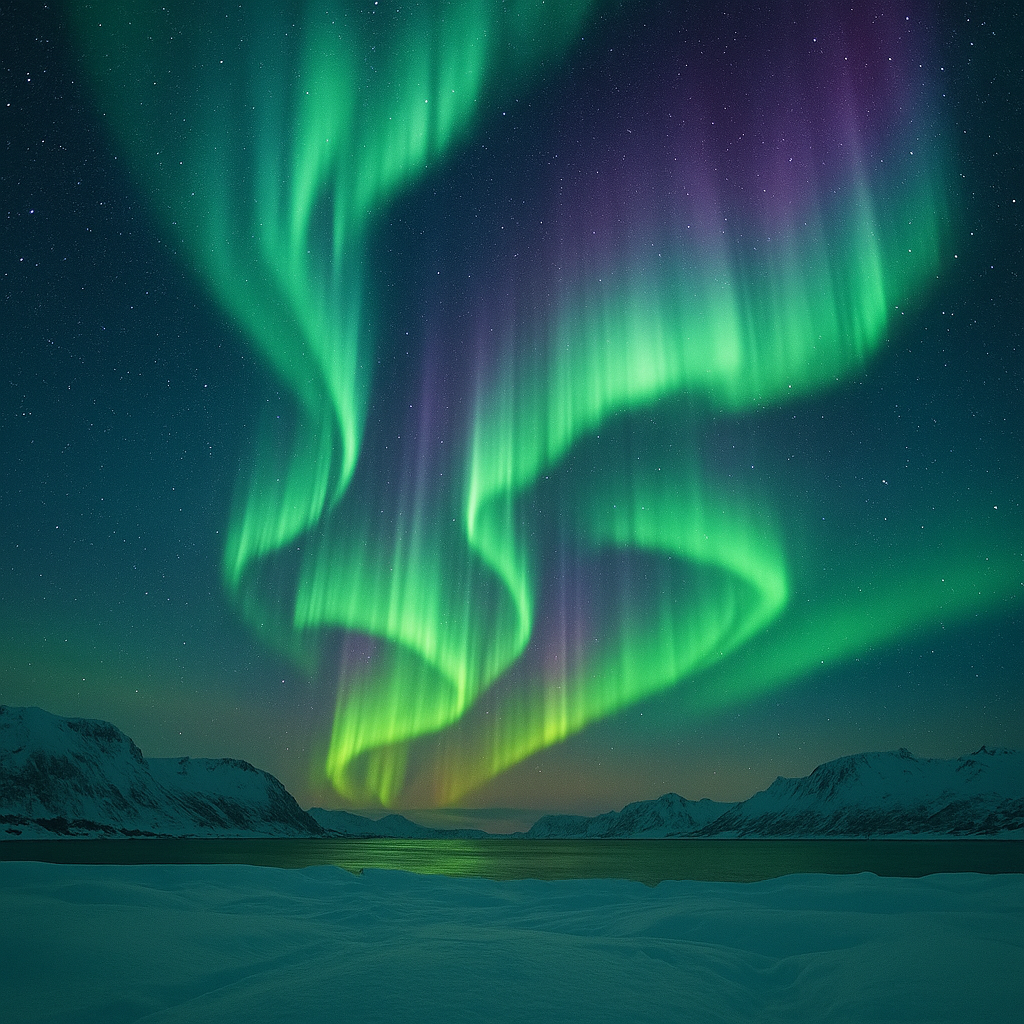 오로라(Aurora)는 지구의 북극과 남극에서 주로 관찰되는 환상적인 자연현상으로, 밤하늘에 펼쳐지는 형형색색의 빛의 커튼처럼 보입니다. 오로라는 태양과 지구, 자기장과 대기의 상호작용으로 만들어지는 과학적이면서도 몽환적인 풍경입니다.