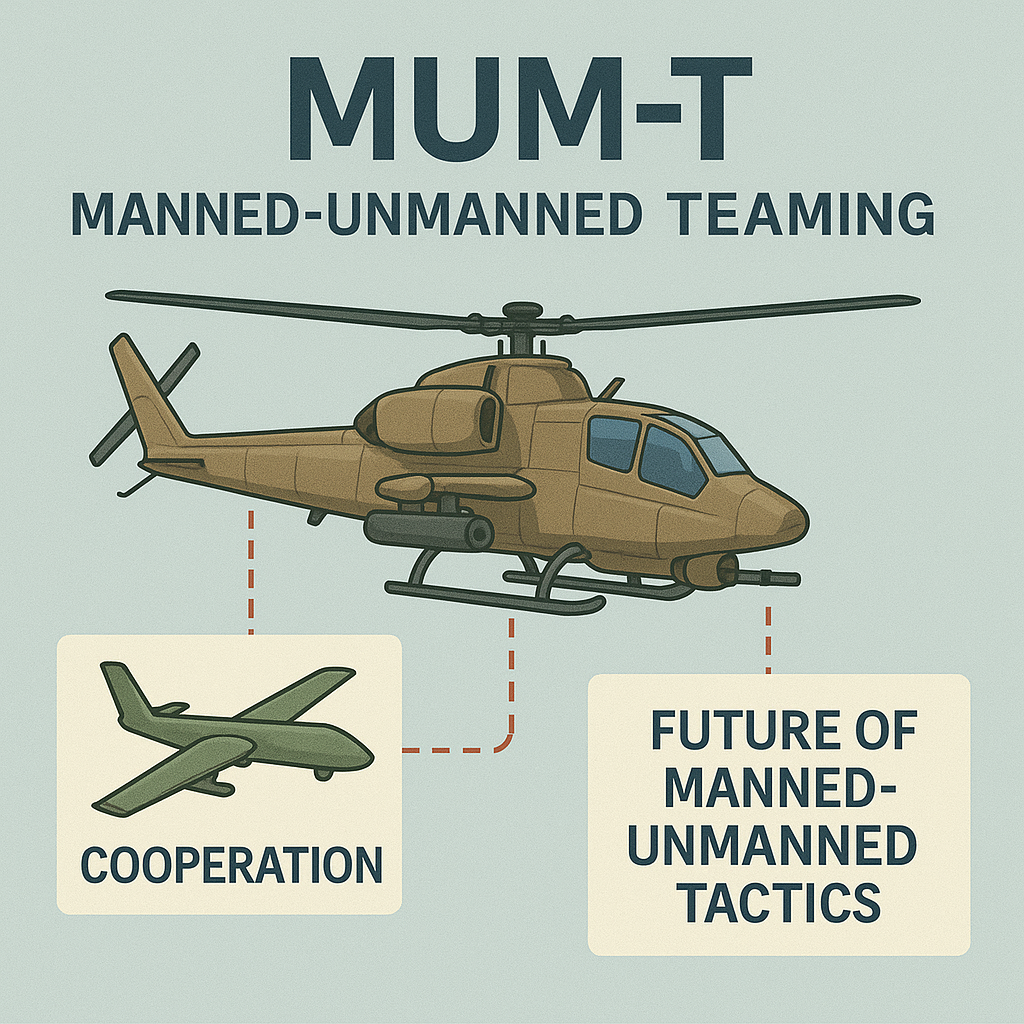 MUM-T는 Manned-Unmanned Teaming의 약자로, 유인 항공기와 무인 항공기(UAV, 드론)를 통합 운용하여 전장의 시너지를 극대화하는 전술 개념입니다. 기존 유인 전력에 무인 플랫폼을 결합함으로써 정보 수집, 목표 타격, 정찰, 전자전 등의 임무를 더욱 효율적이고 안전하게 수행할 수 있습니다. 최근 들어 미군, NATO, 한국군 등 주요 군대에서 적극적으로 채택하고 있으며, 차세대 전투 전략의 핵심 요소로 부상하고 있습니다.