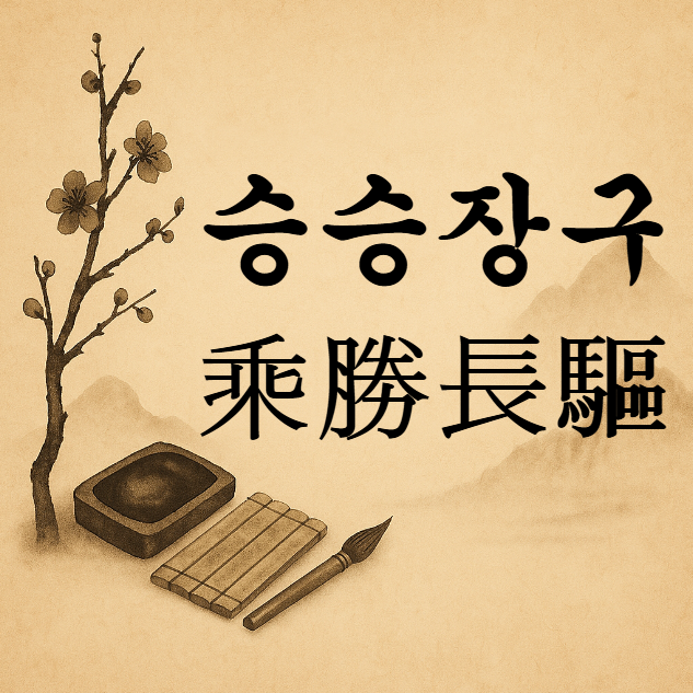 승승장구(乘勝長驅)는 전투에서 승리한 기세를 타고 적의 본거지까지 몰아쳐 진격한다는 의미의 사자성어입니다. 한자 뜻을 보면 다음과 같습니다.