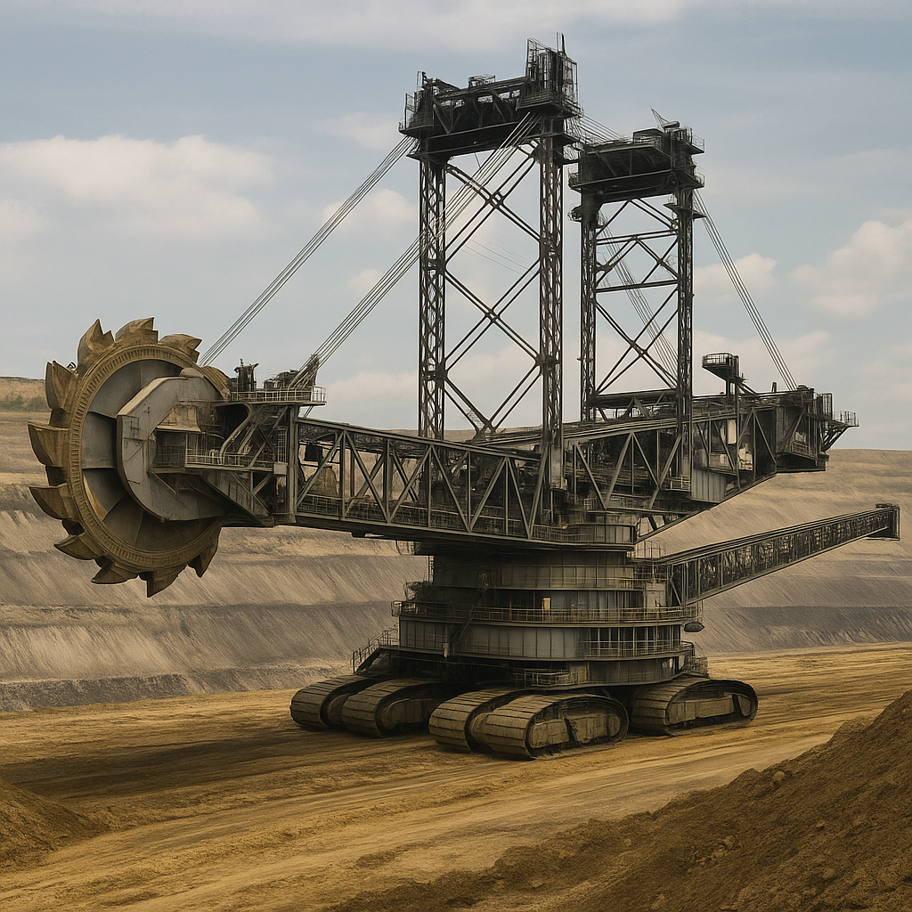 이 거대한 기계는 대규모 채굴 작업에 최적화되어 있으며, 한 번 회전할 때마다 수 톤의 자재를 퍼올릴 수 있는 버킷휠 시스템을 갖추고 있습니다.