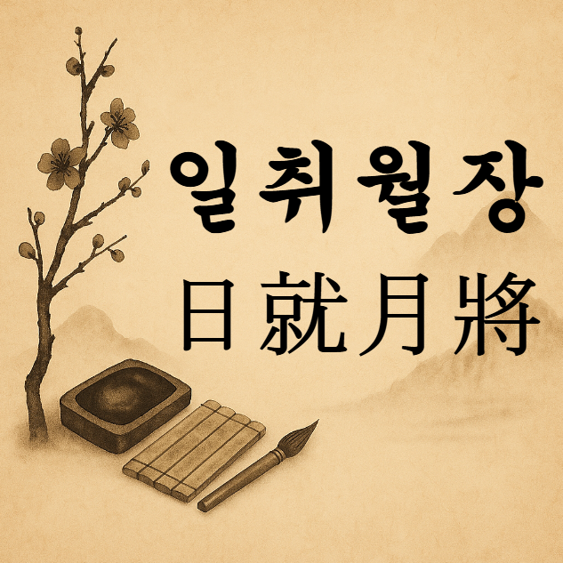 ‘일취월장(日就月將)’은 한자로 날 일(日), 이를 취(就), 달 월(月), 나아갈 장(將)으로 구성된 사자성어로, 날마다 나아가고, 달마다 자란다는 의미를 지닙니다.